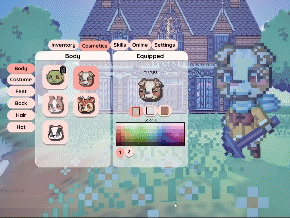 Unlock cool and cute Cosmetic Items to style your Cozy Character however you like! Let your imagination run wild with color customizations that you may set per part. And when you're done with your Character, it's time to customize your dream house!